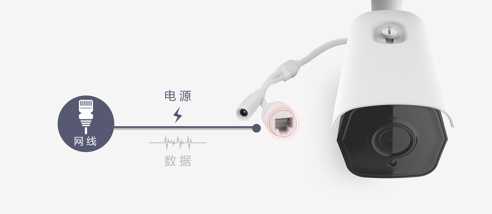 PoE的呈现,使长视200万全彩定焦摄像机在接通电源的环境下,也能停止数据传输。